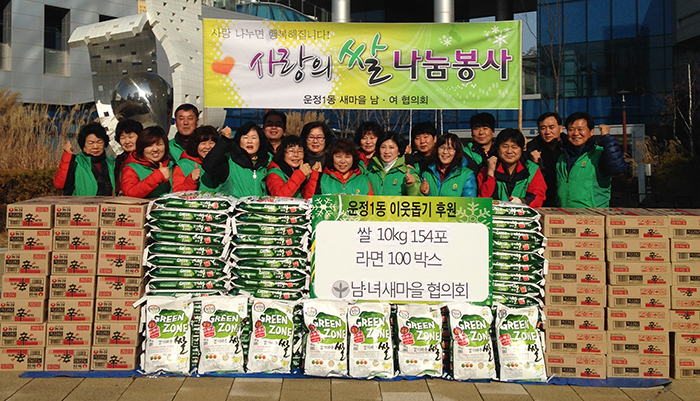 운정1동 사미영 동장은 “항상 궂은일에 앞장서는 남·녀 새마을지도자 회원분들께 감사드린다”며 “앞으로도 지역주민 모두가 더불어 사는 따뜻한 운정1동을 만들어가는 데 앞장 서줄 것을 당부드린다”고 말했다. 이날 기탁된 쌀과 라면은 복지사각지대에 있는 차상위계층 및 독거노인들에게 전달될 예정이다.